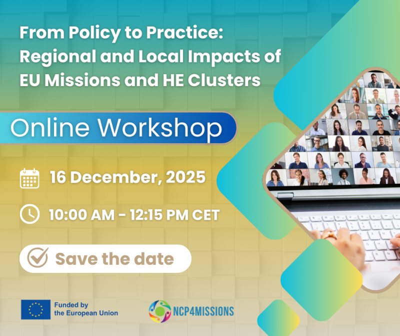 The event is open to potential applicants for EU Missions/Cluster calls, Missions and Clusters NCPs, and stakeholders from regional and local authorities, research, and civil society organizations.